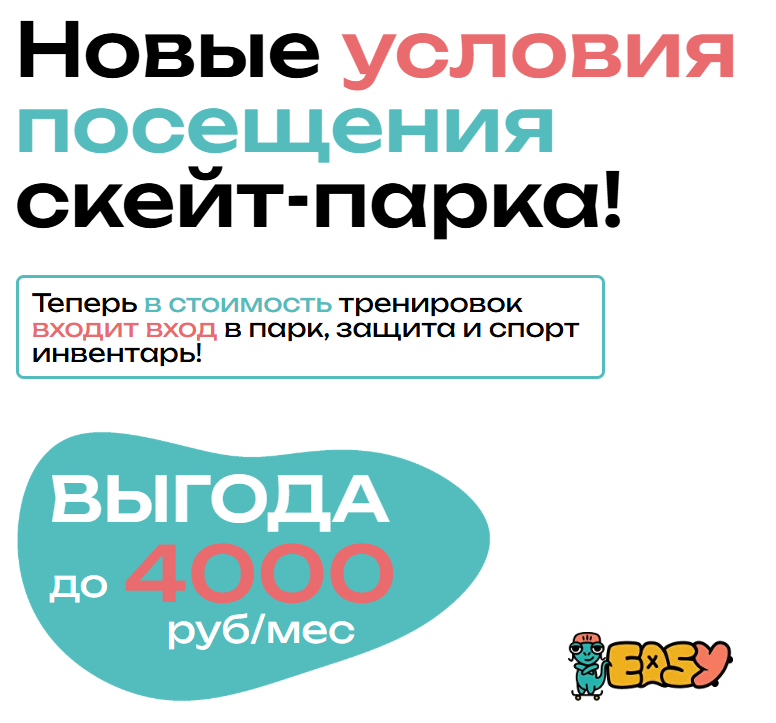 Друзья! С 1 февраля действуют новые условия посещения парка Easy Spot и тренировок от Easy Skate Team!